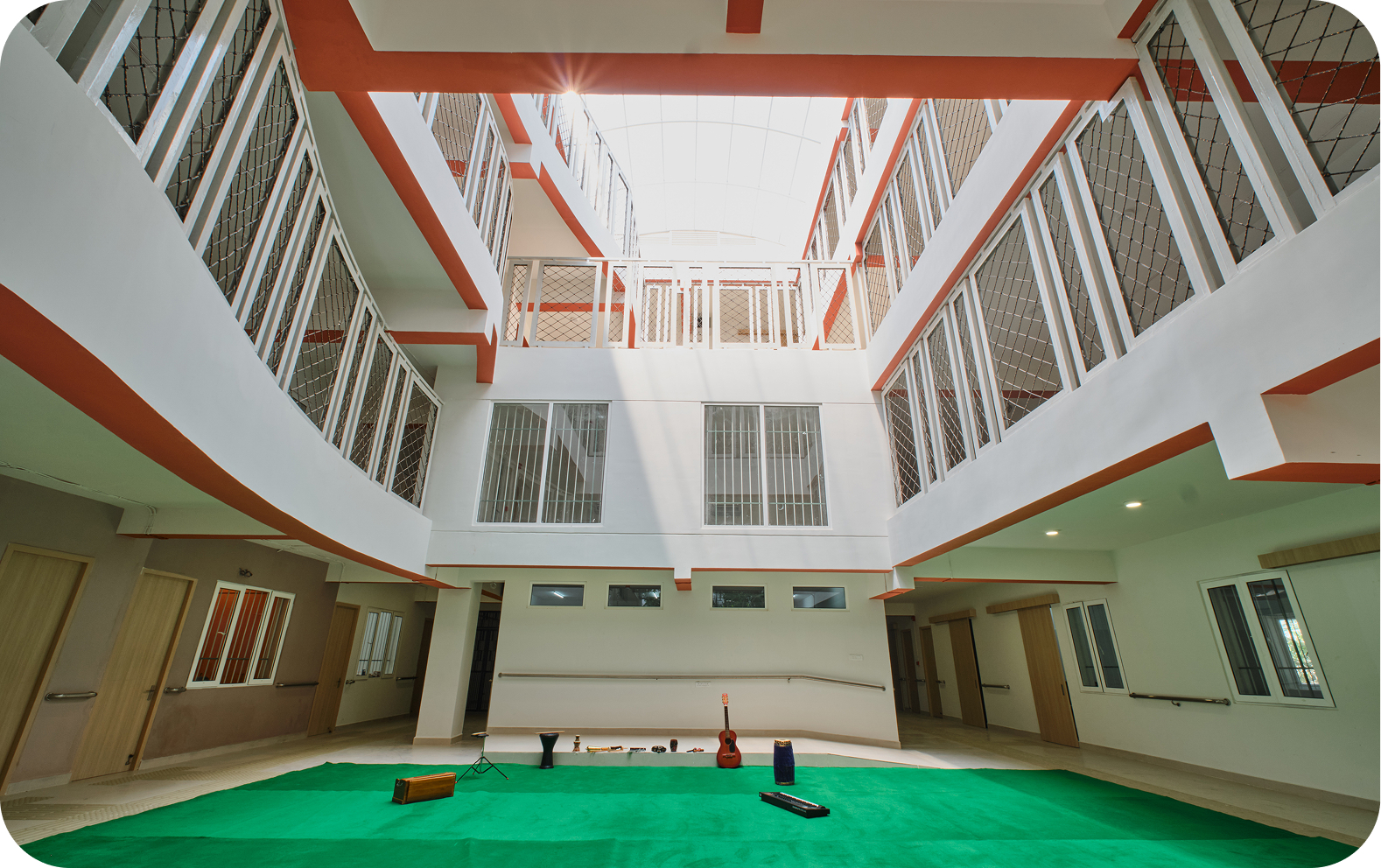 The school has large, well-lit common areas, with integrated CCTV cameras ensuring that children are always safe and secure.